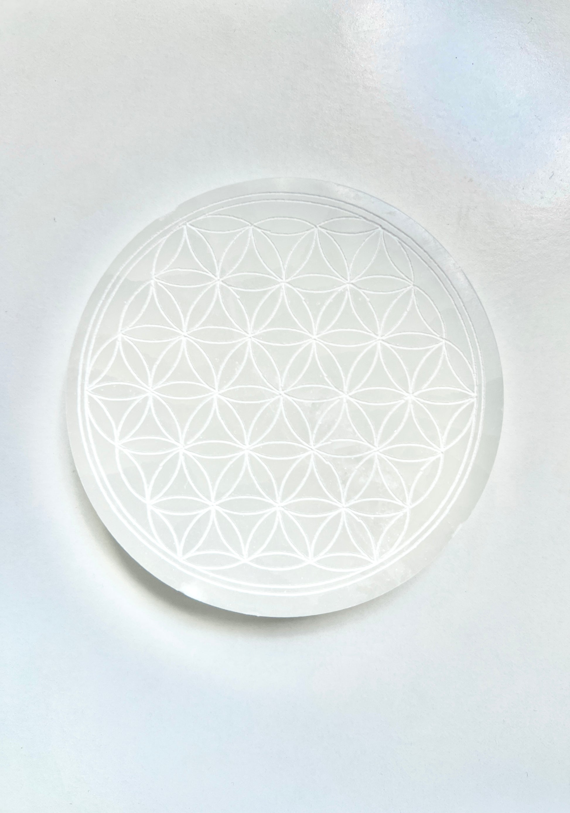 This selenite charging plate is a luminous sanctuary for your crystals, jewelry, or small sacred objects—a quiet ritual of energy cleansing and alignment. Engraved with the Flower of Life pattern, it invites harmony, balance, and connection into your space.