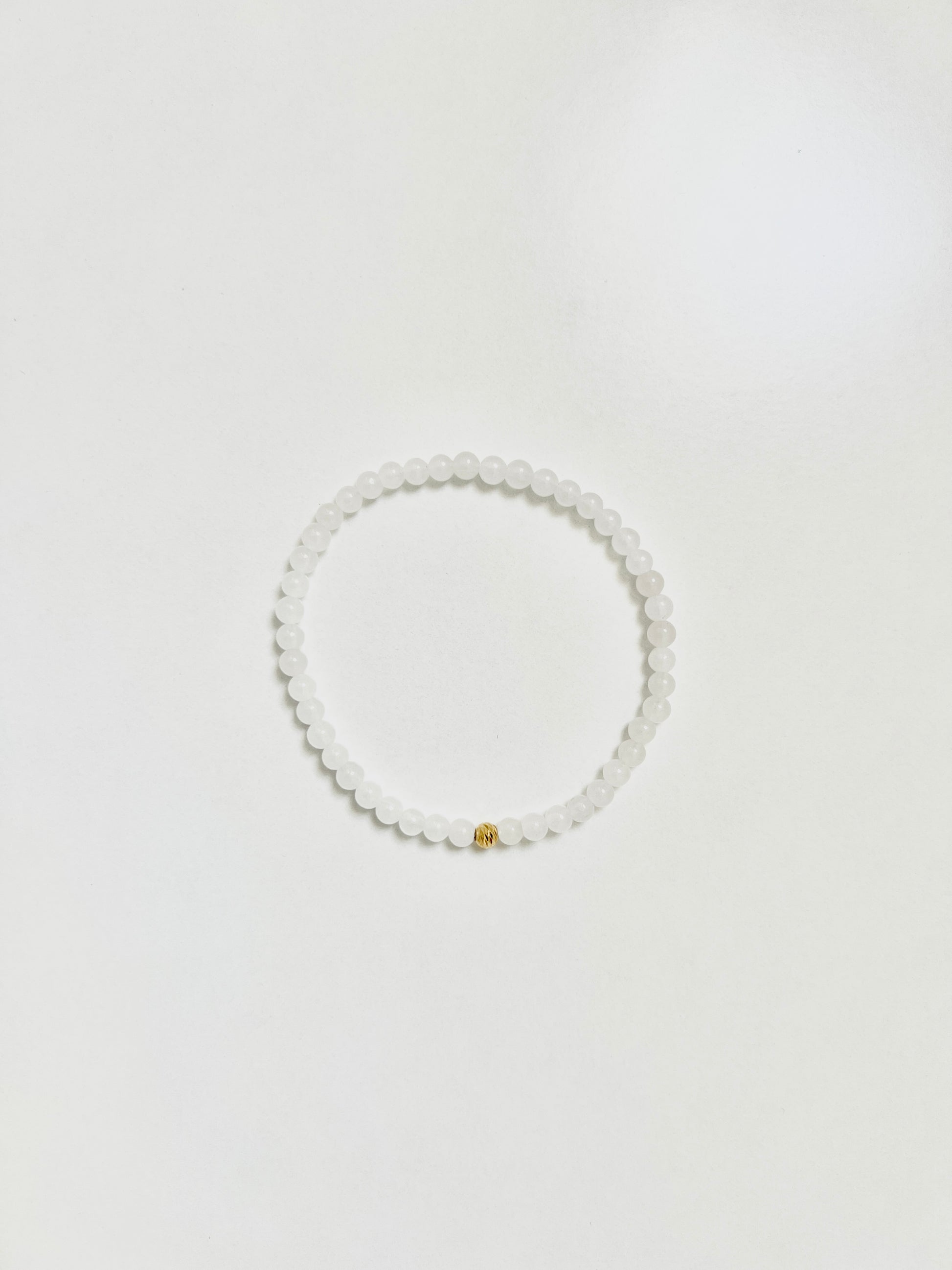 The Purity Ritual Bracelet features luminous 4mm white jade beads accented with a solitary gold vermeil bead—a quiet celebration of clarity, balance, and inner serenity. This bracelet is a gentle reminder to embrace simplicity, release what no longer serves you, and move through your day with grace.